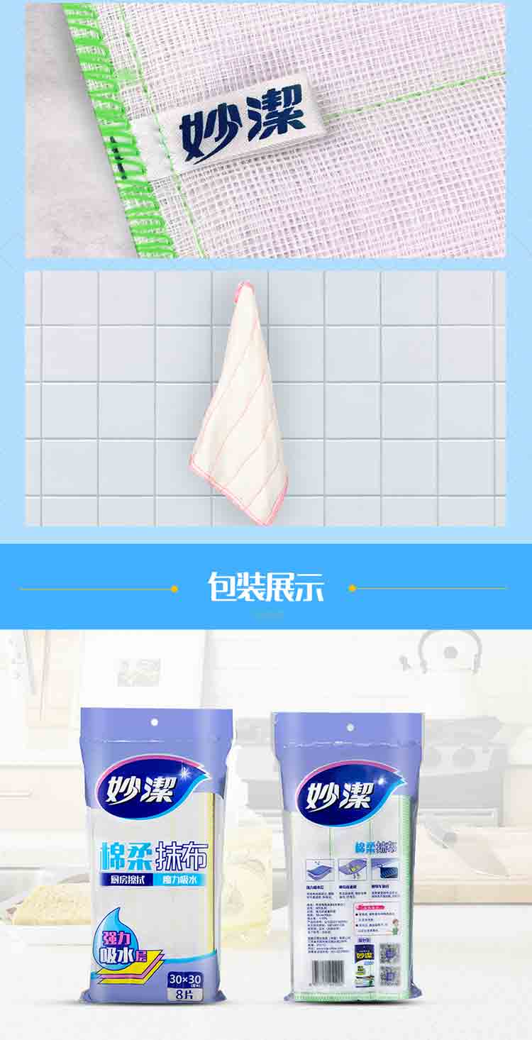 商品名称:妙洁 8片装棉柔吸水抹布擦拭布 加厚实惠装