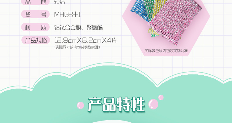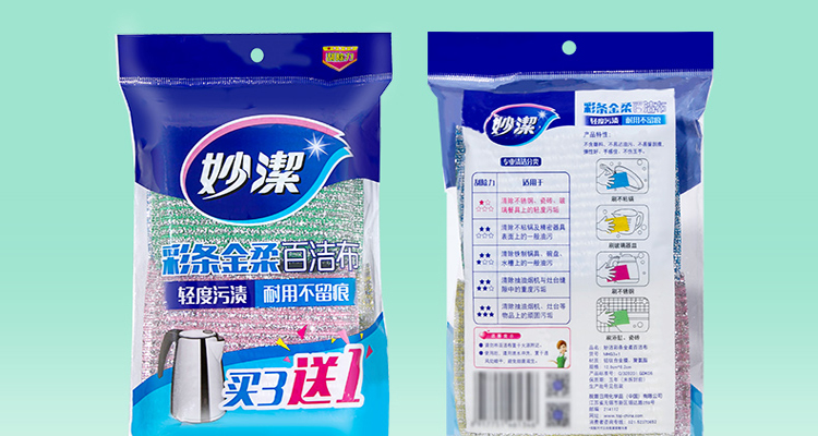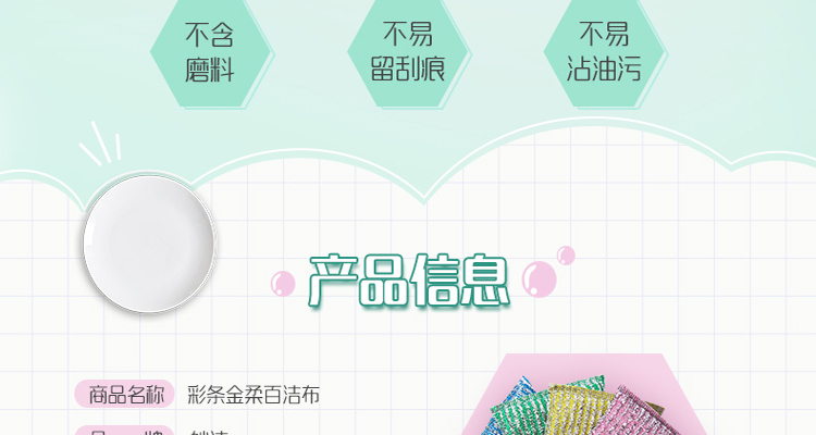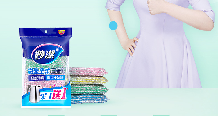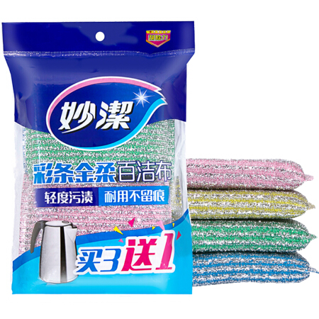 商品名称:妙洁 彩条金柔百洁布清洁布4片 厨房专用