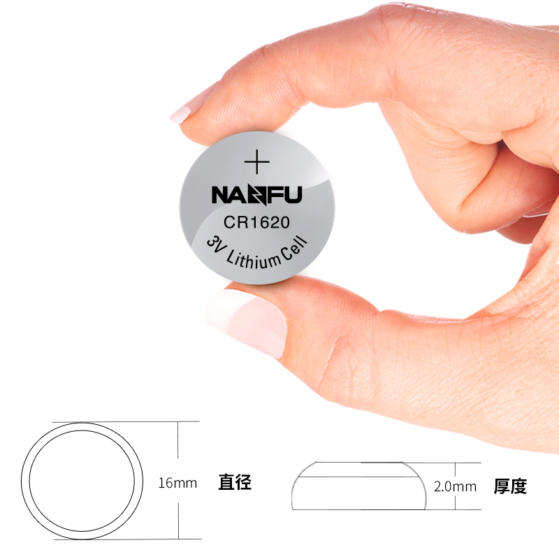 南孚纽扣电池CR1620 3V锂电子玩具门铃马自达汽车钥匙小圆电池5粒手表体重秤电视遥控器圆形电池原装正品通用