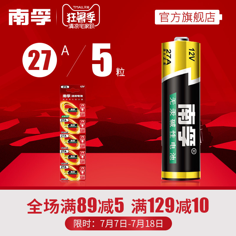 商品名称:南孚电池27A 12V电池卷帘门铃汽车遥控器12v27a干电池批发 5粒电动卷闸门遥控器小号通用电池官方原装正品