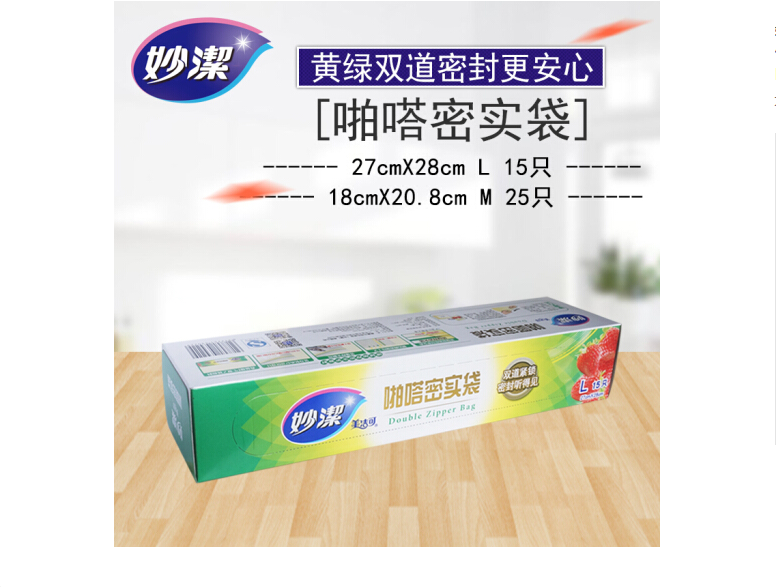 商品名称:妙洁MBZL-A啪嗒密实袋 L (27*28cm) 15只/盒