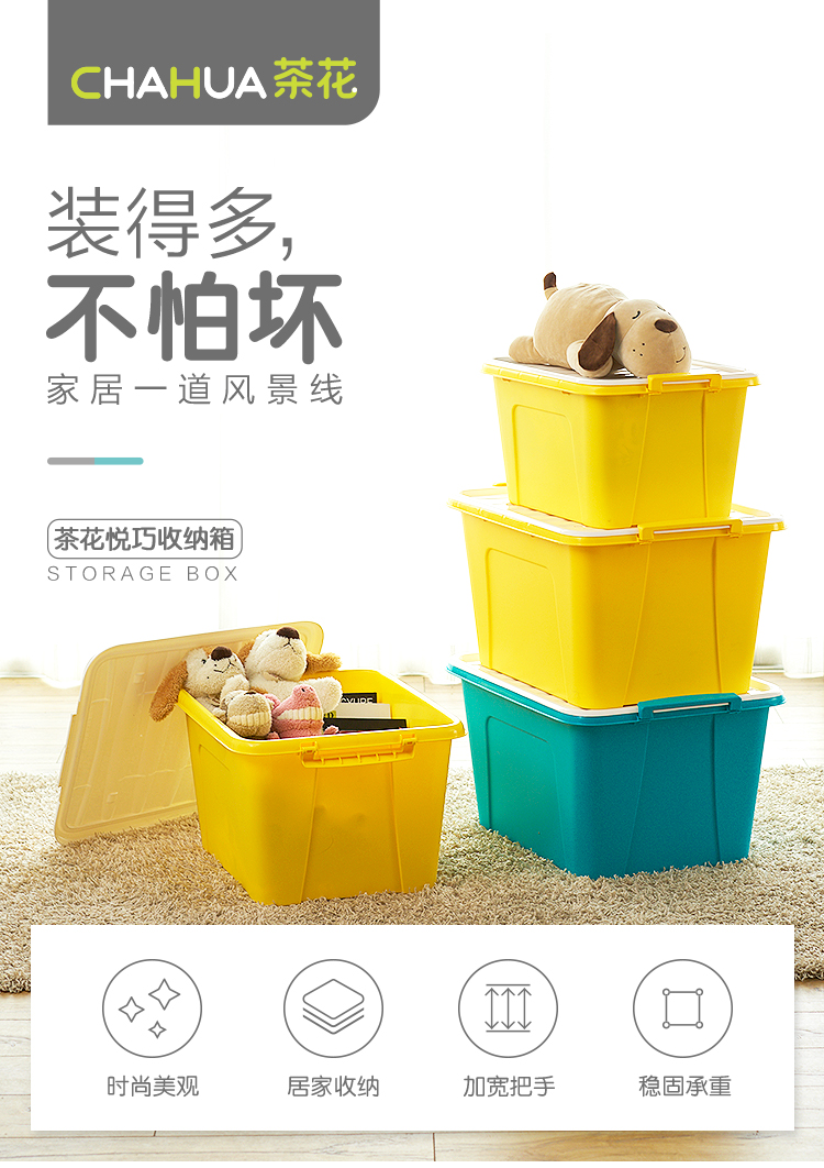茶花 68L大容量收纳箱带轮整理箱百纳储物盒2899