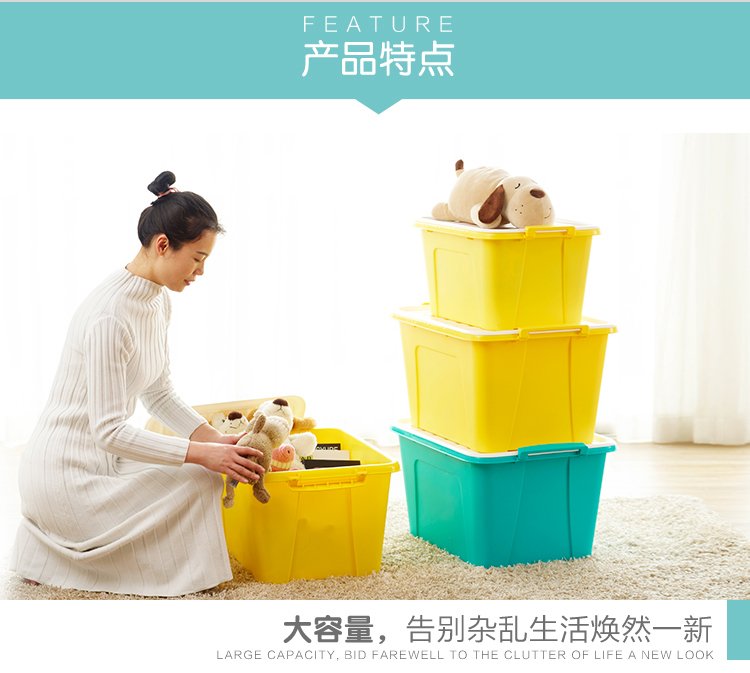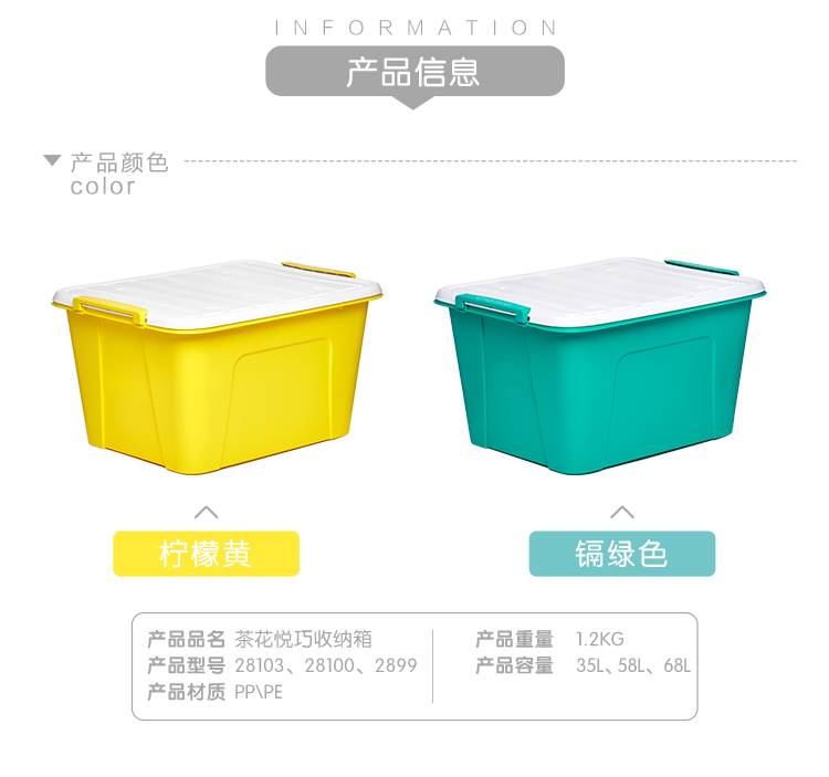 商品名称:茶花 68L大容量收纳箱带轮整理箱百纳储物盒2899