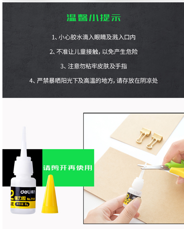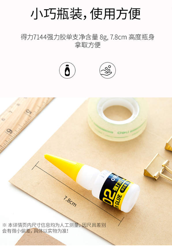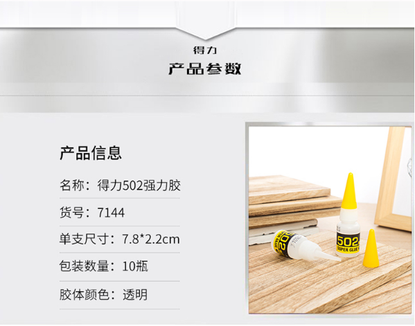 商品名称:得力(deli)7144 502强力胶(8g)瓶