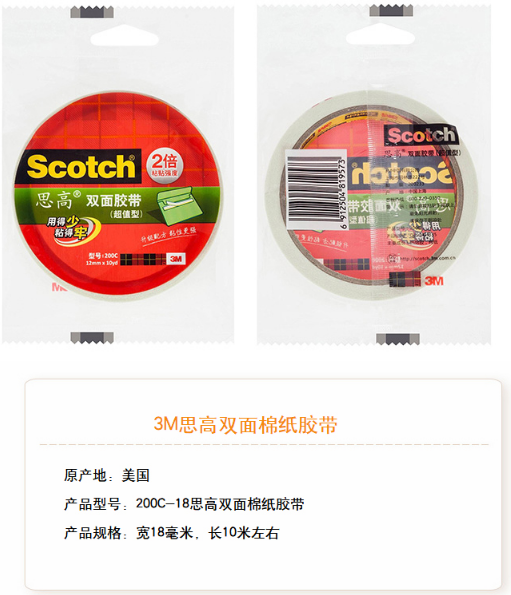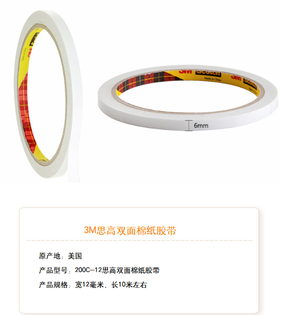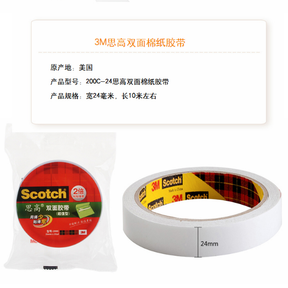 商品名称:3M 200C-24 双面强力粘贴棉纸胶带 24mm*10m