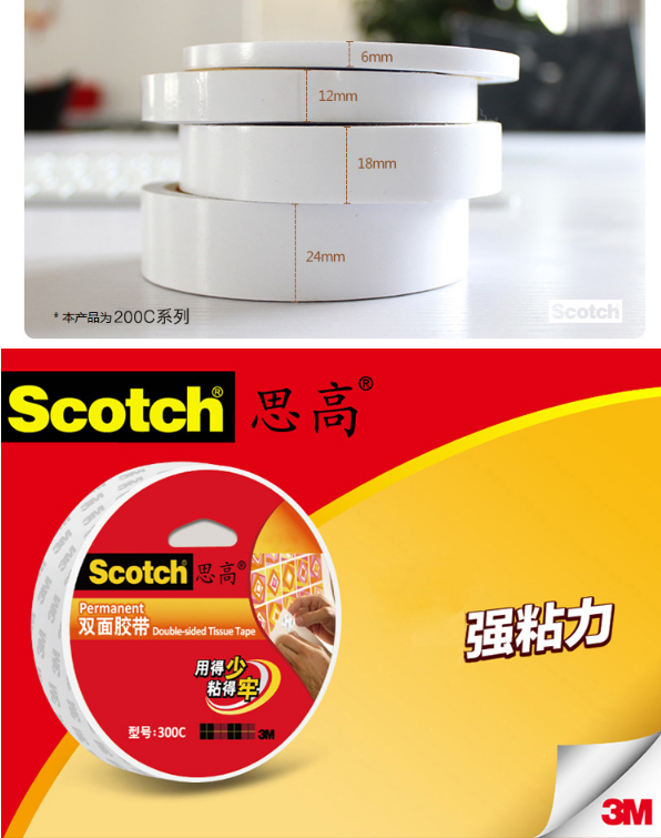 3M 200C-24 双面强力粘贴棉纸胶带 24mm*10m