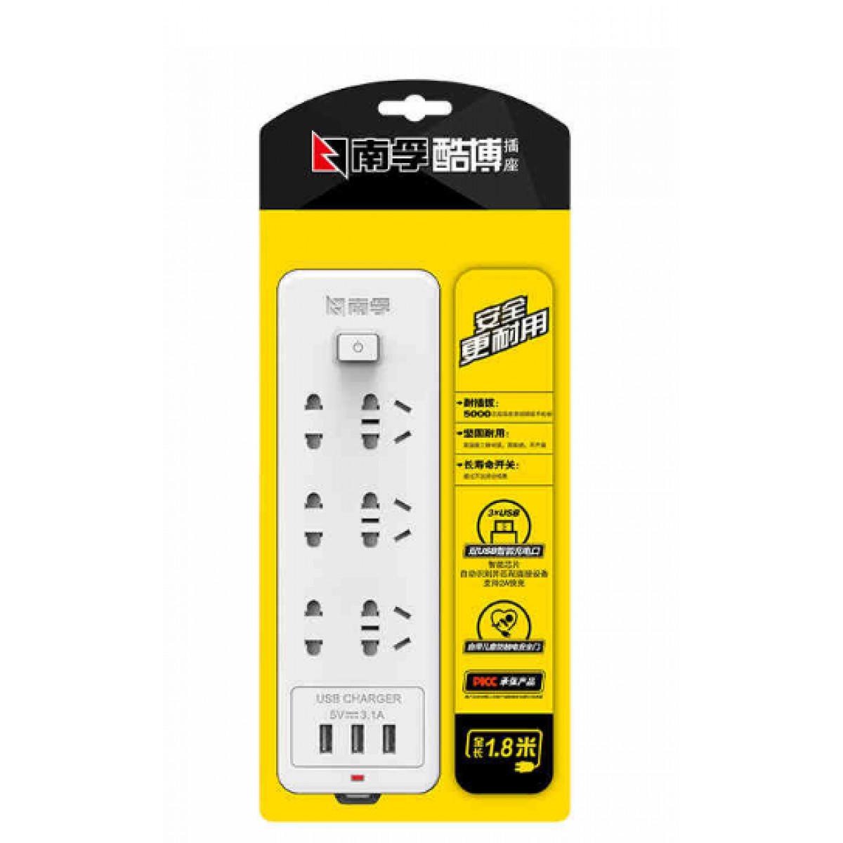 南孚NF603U 酷博排插3USB 6位总控 1.8M插线板