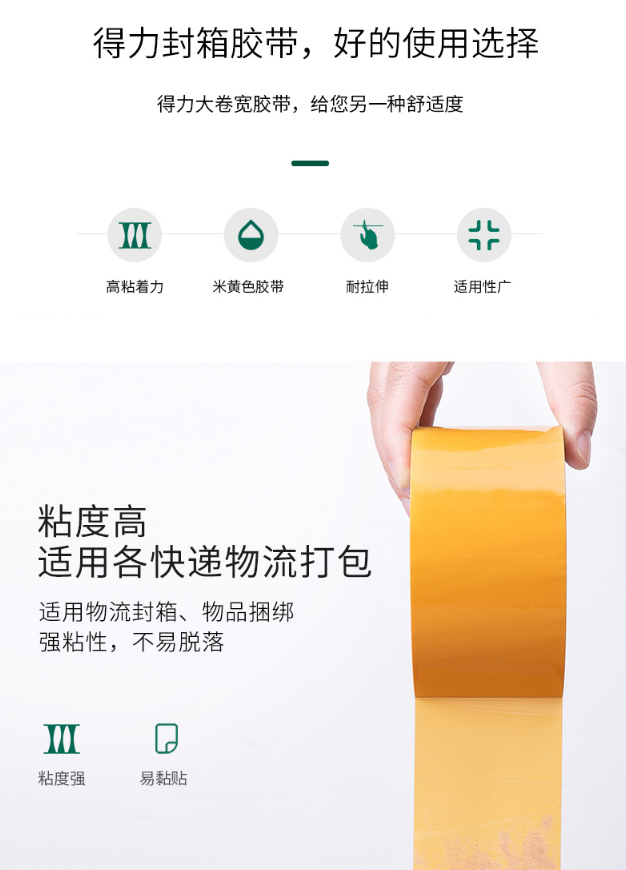 商品名称:得力30358 封箱胶带 6cm粘胶纸 60y米黄色包装胶带