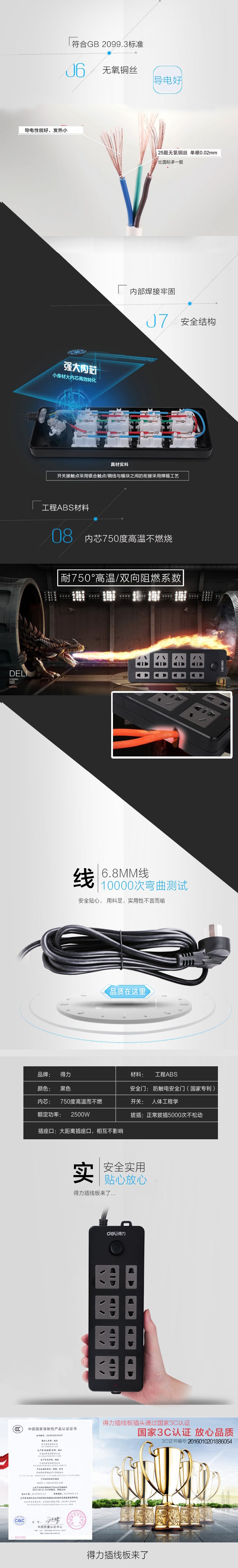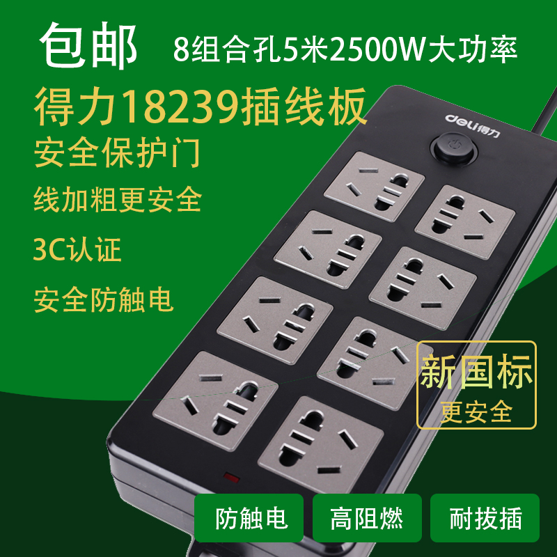商品名称:得力(deli)18239 新国标8位组合孔5米 大孔距总控开关插座