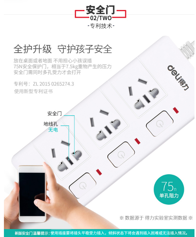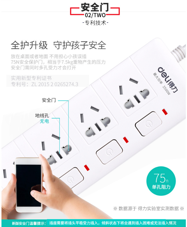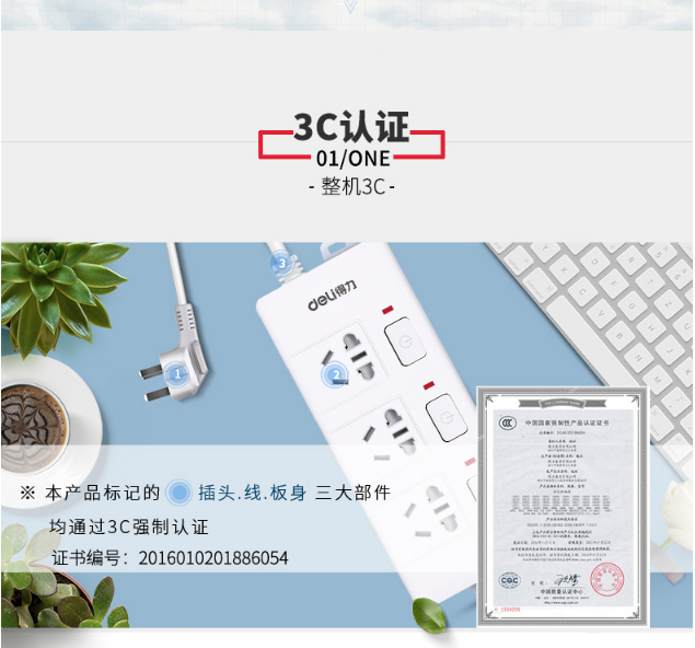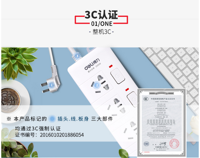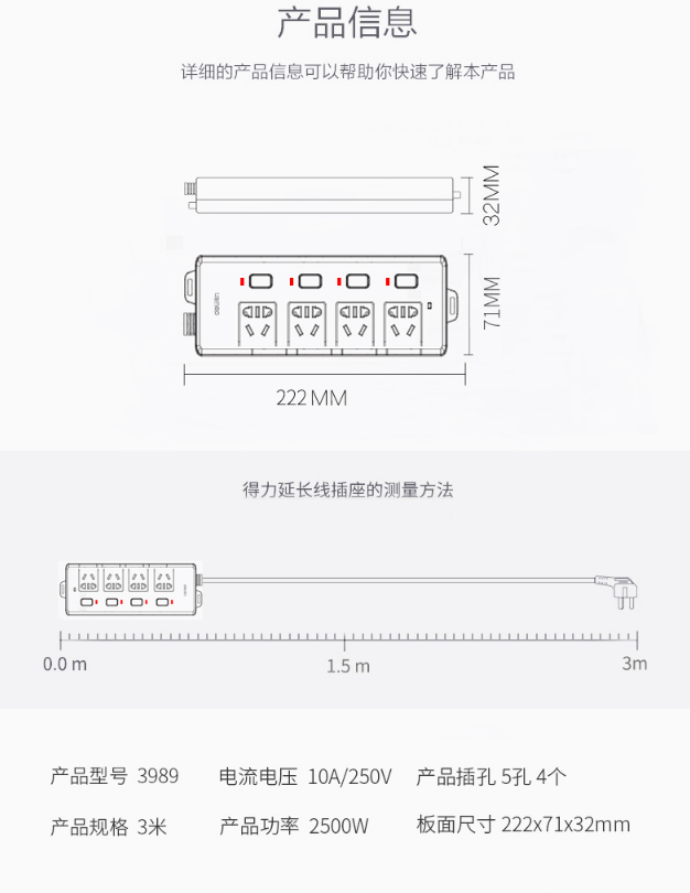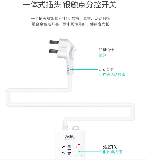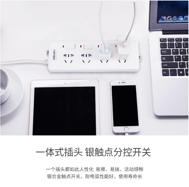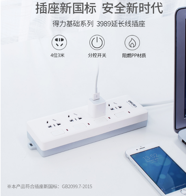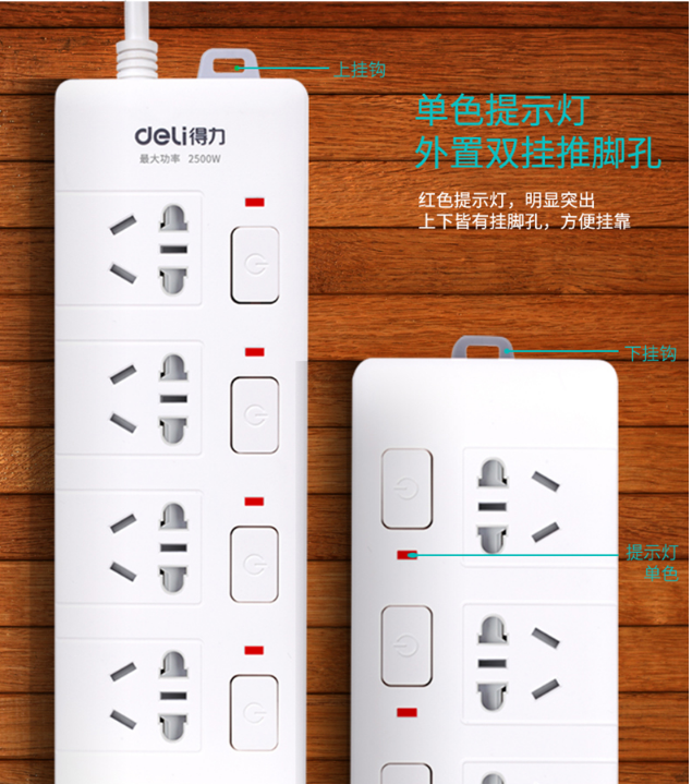 商品名称:得力(deli)3989 新国标4位分控独立开关 全长3米