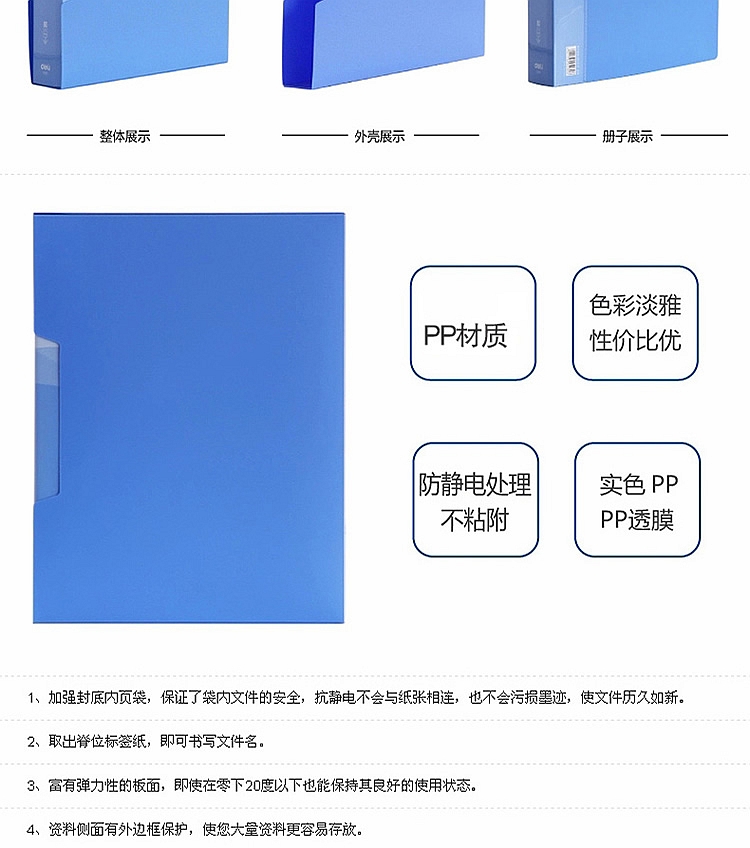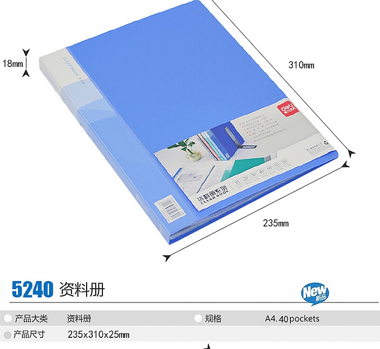 商品名称:得力A4资料夹5240插页资料册40页资料收纳整理 办公用品