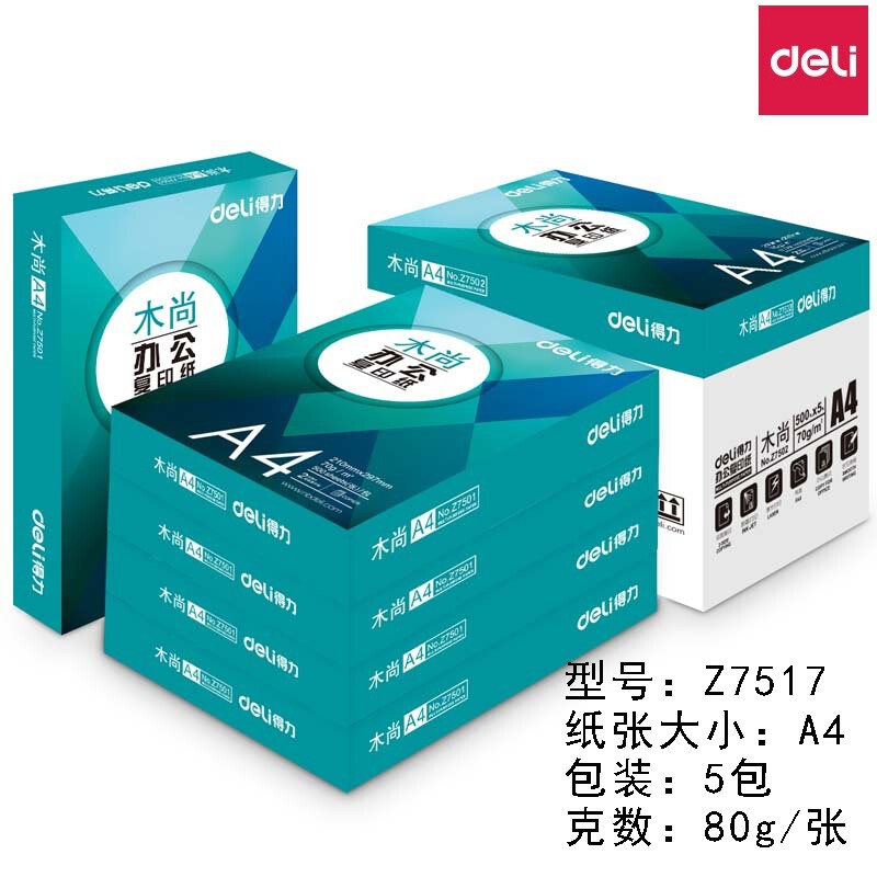 得力Z7517木尚复印纸 A4 80g 500张/包 5包/箱