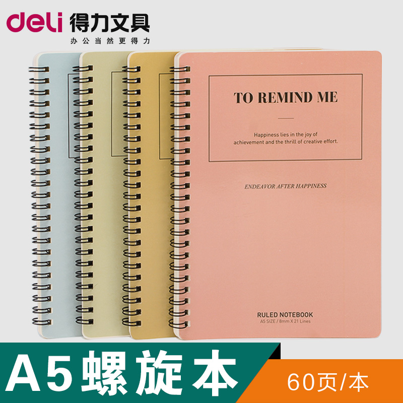 商品名称:得力LA560线圈本 A5螺旋本笔记本学生练习本 单本颜色随机