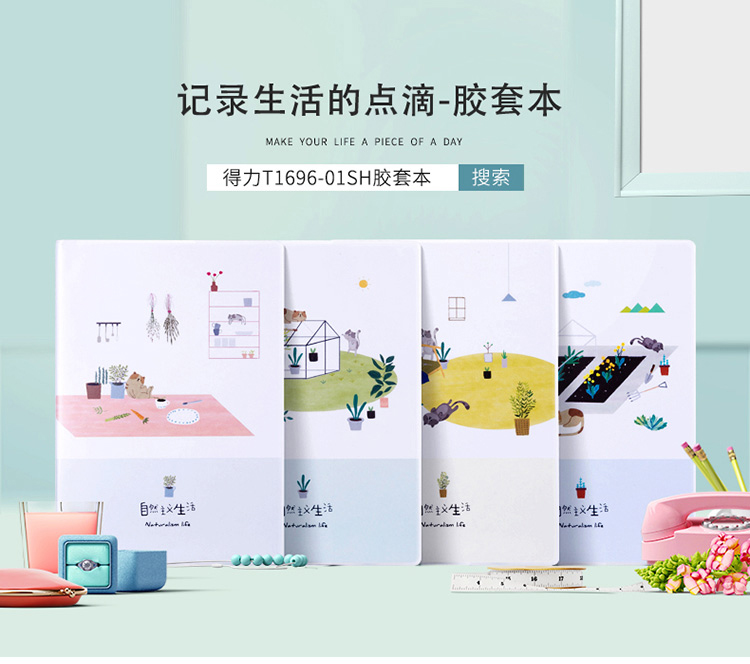 得力(deli) T1696-01SH胶套本 B5记事本 16K笔记本 本子卡通创意本 颜色随机1本 96页-T1696-01SH