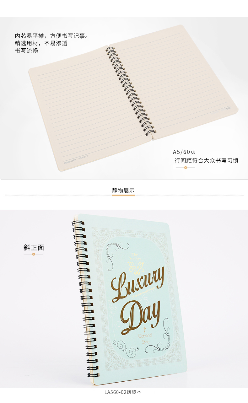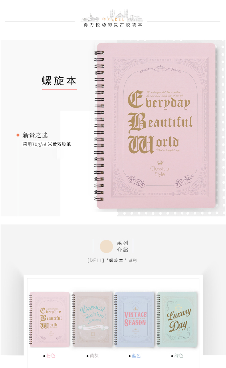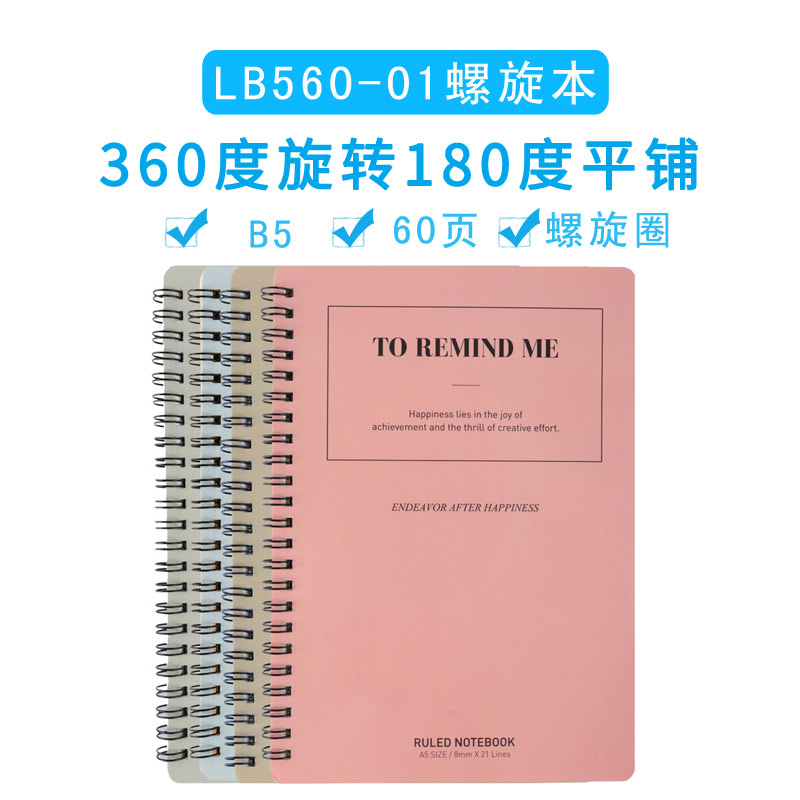 商品名称:得力LB560-01彩色线圈本螺旋本 B5/60页