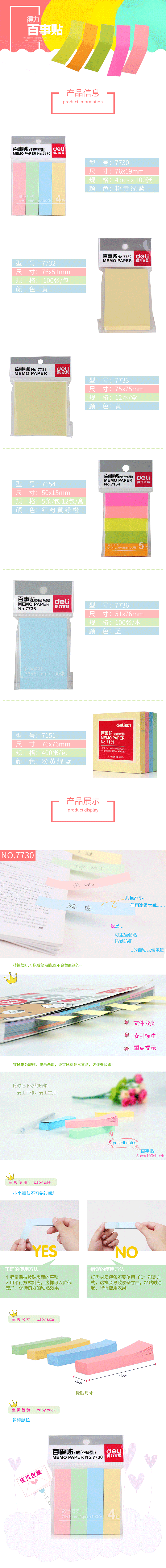 商品名称:得力7154创意便利贴(50*15mm)混色 12包/盒