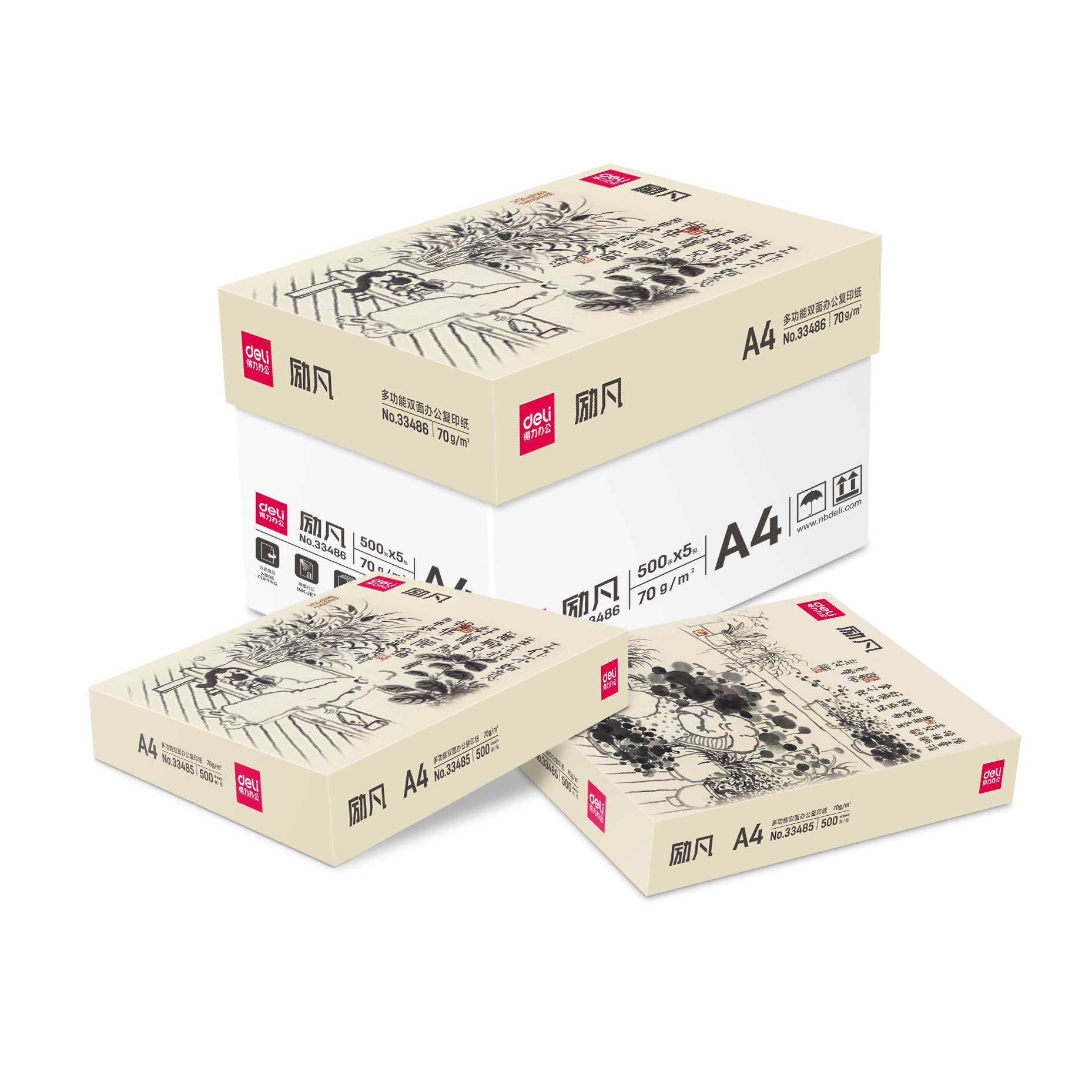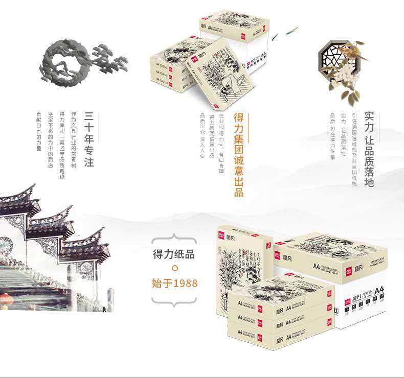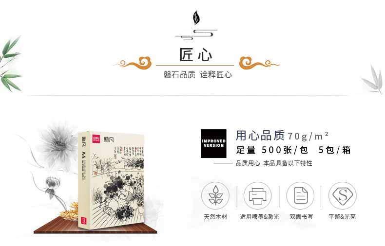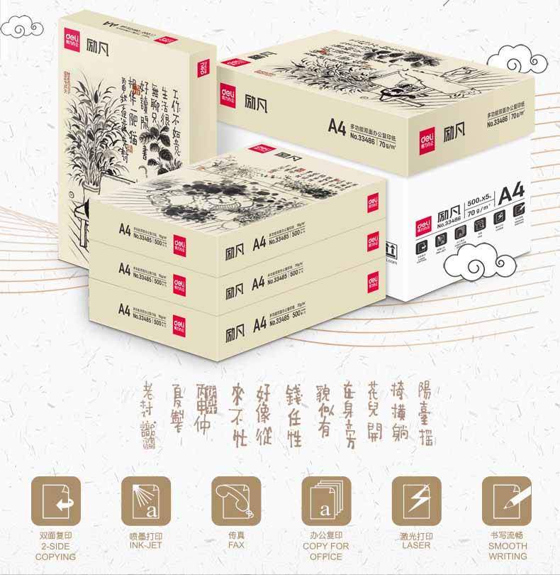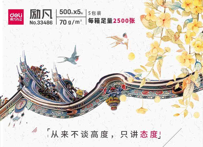商品名称:得力33486励凡复印纸 A4 70g 500张/包 5包/箱 单位:箱