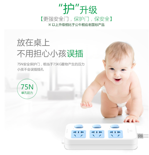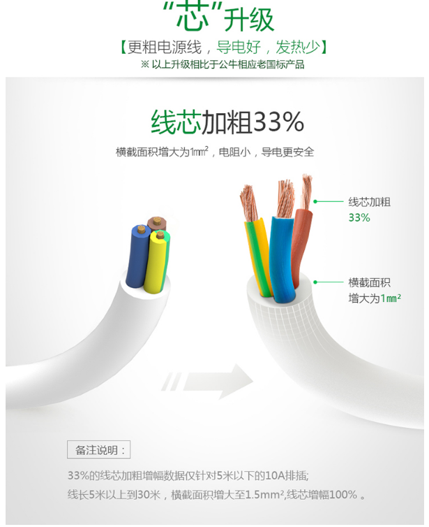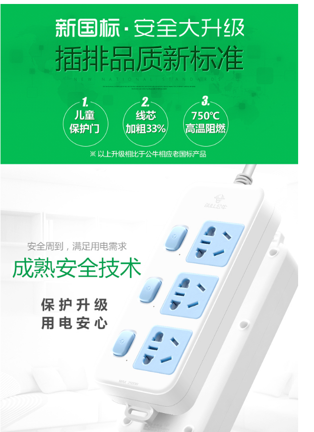 商品名称:公牛GN-602新国标插座 5位总开关全长3米