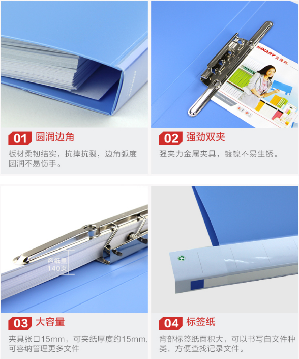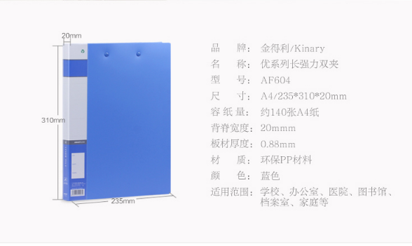 商品名称:齐心A605文件夹A4双强力夹 红色