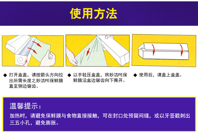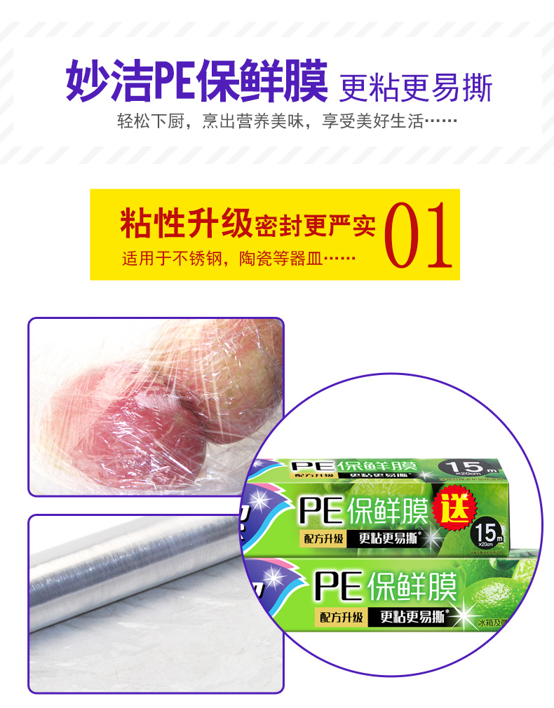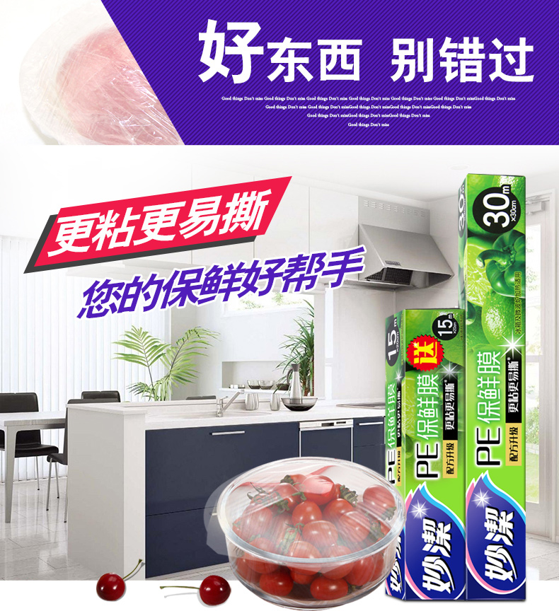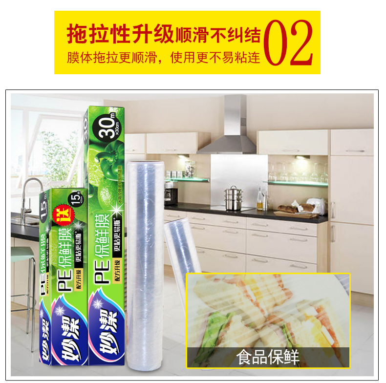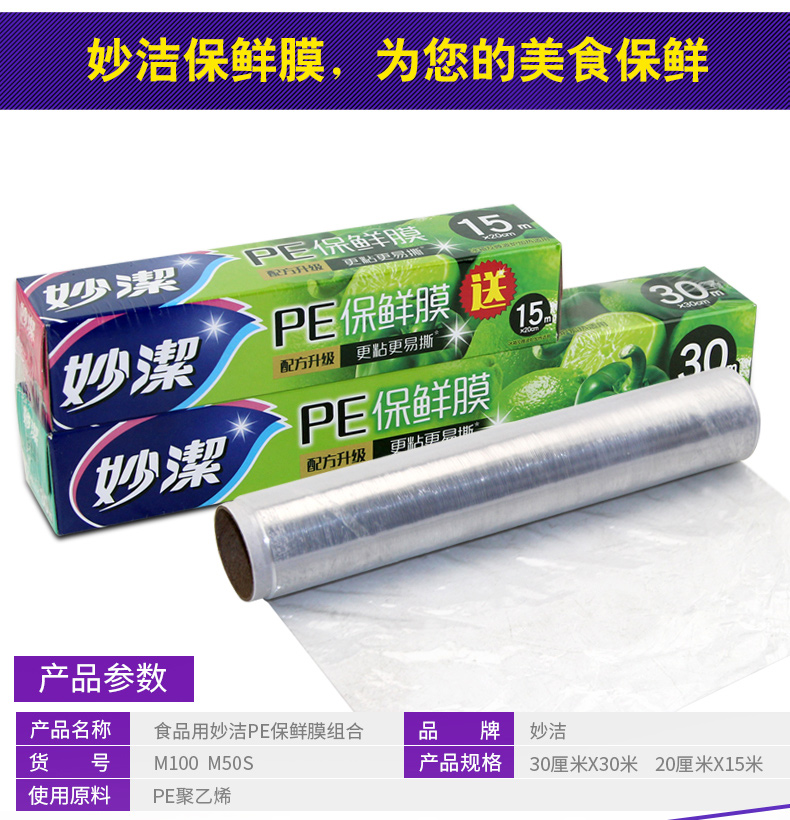 商品名称:妙洁免刀撕PE保鲜膜30米小碗盒装