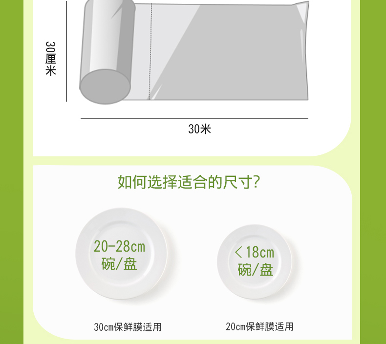 妙洁M100D免刀撕PE保鲜膜(30cm*30米)盒