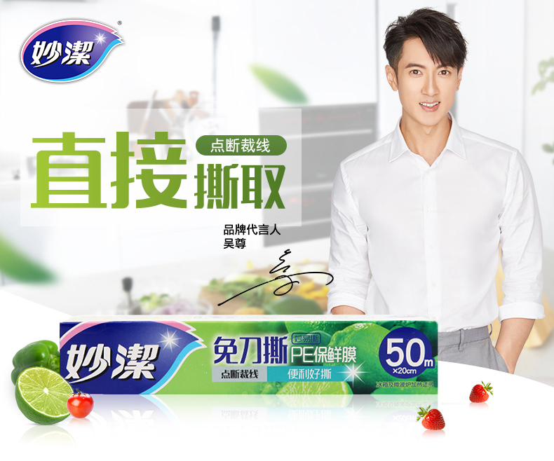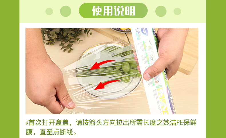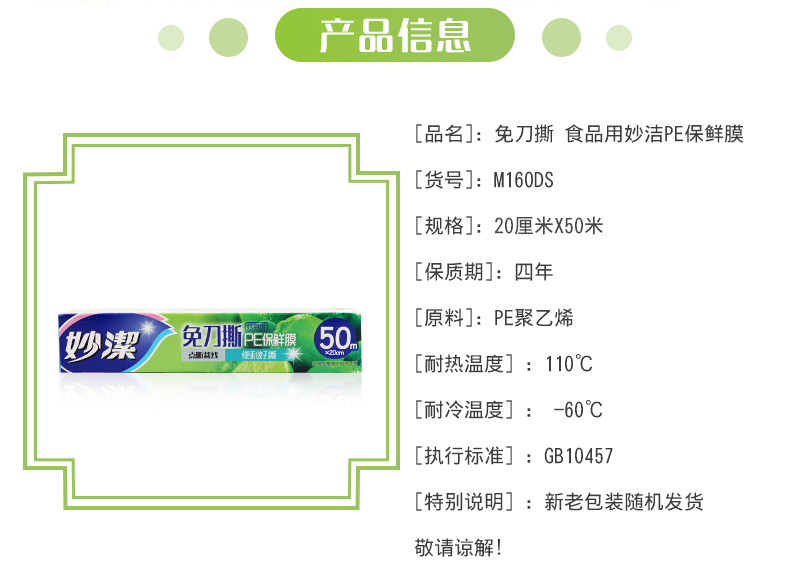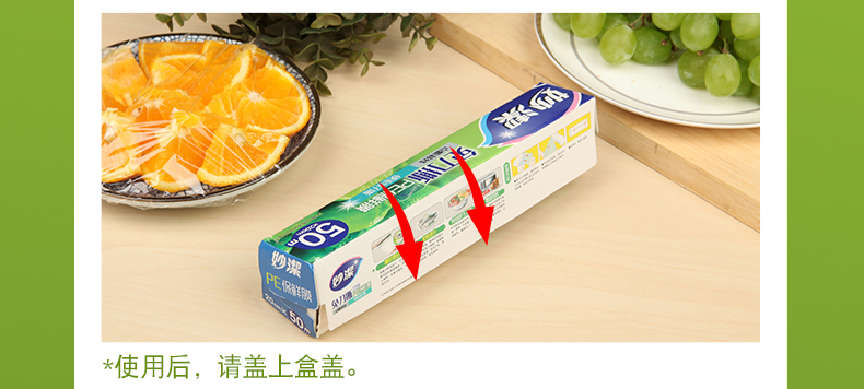 商品名称:妙洁免刀撕PE保鲜膜50米小碗盒装