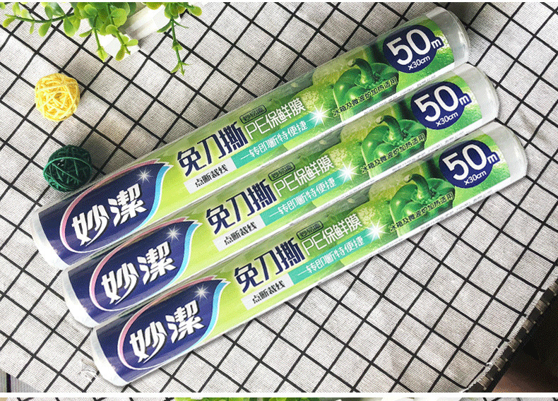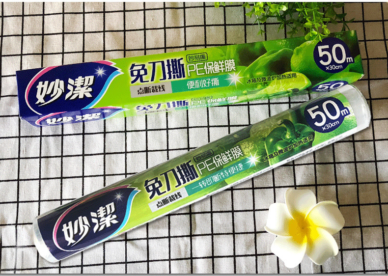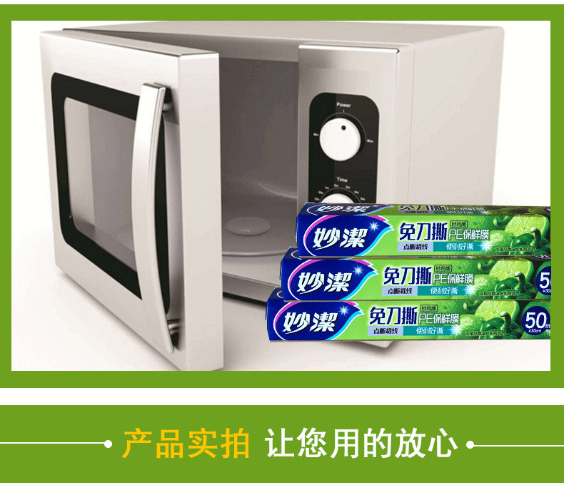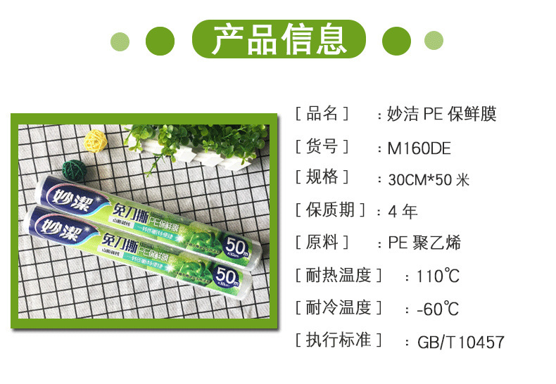 商品名称:妙洁免刀撕PE保鲜膜50米大碗盒装