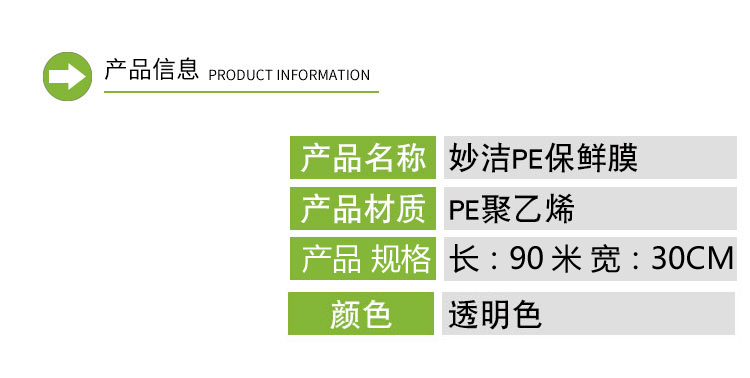 商品名称:妙洁M300E-HN PE保鲜膜(30CM*90米)卷