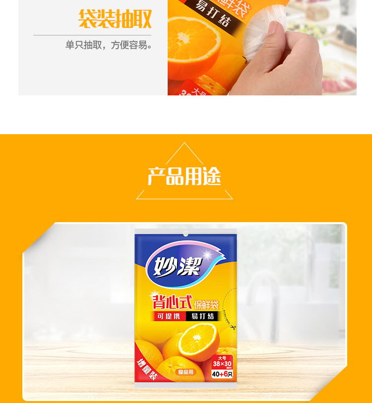 商品名称:妙洁MBVL-A背心式保鲜袋大号38*30cm(40+6只/包