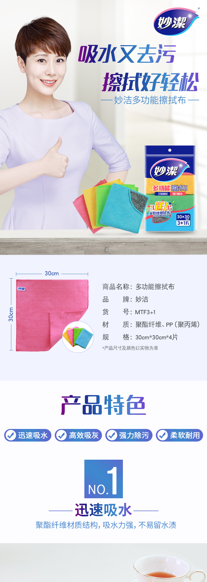 商品名称:妙洁竹纤去油抹布2+1片装 MTD2+1