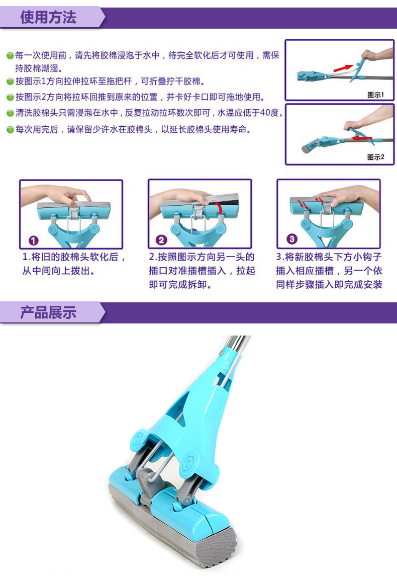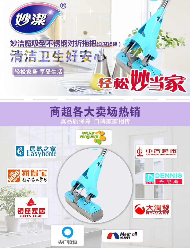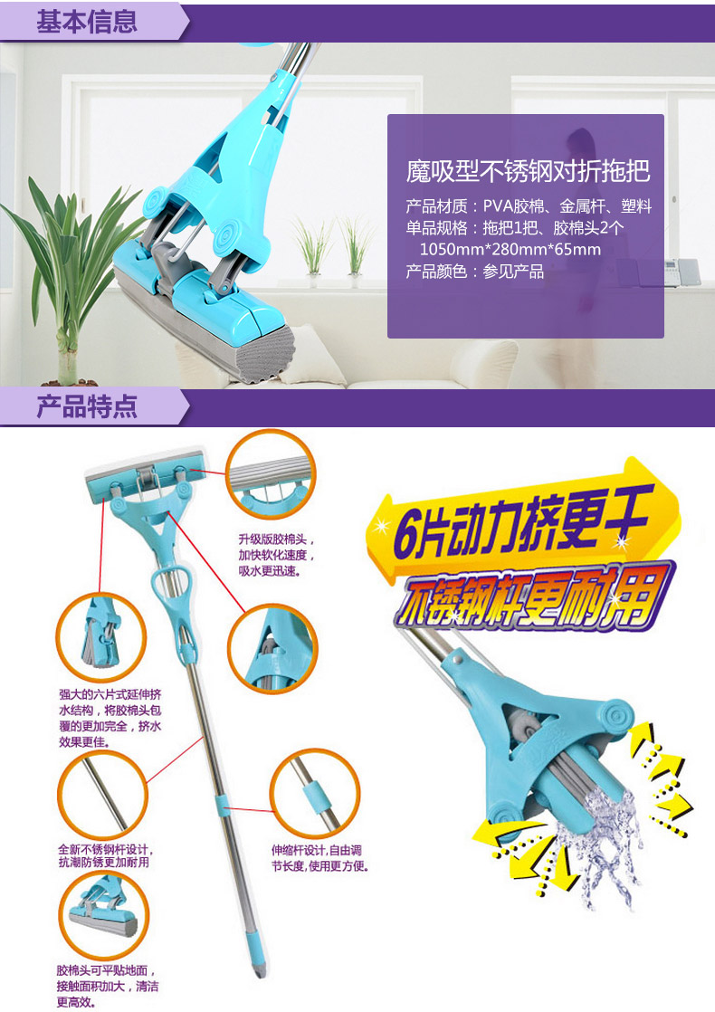 商品名称:妙洁MOJYT-A魔吸不锈钢对折式拖把送替换装
