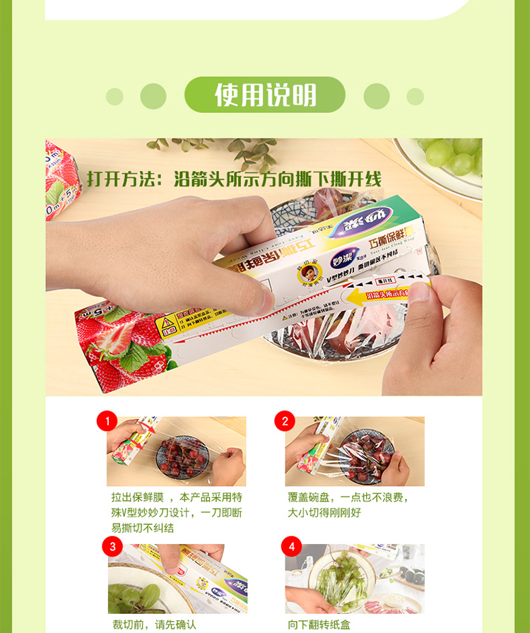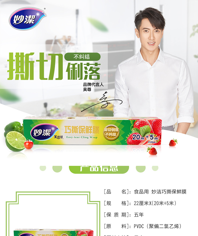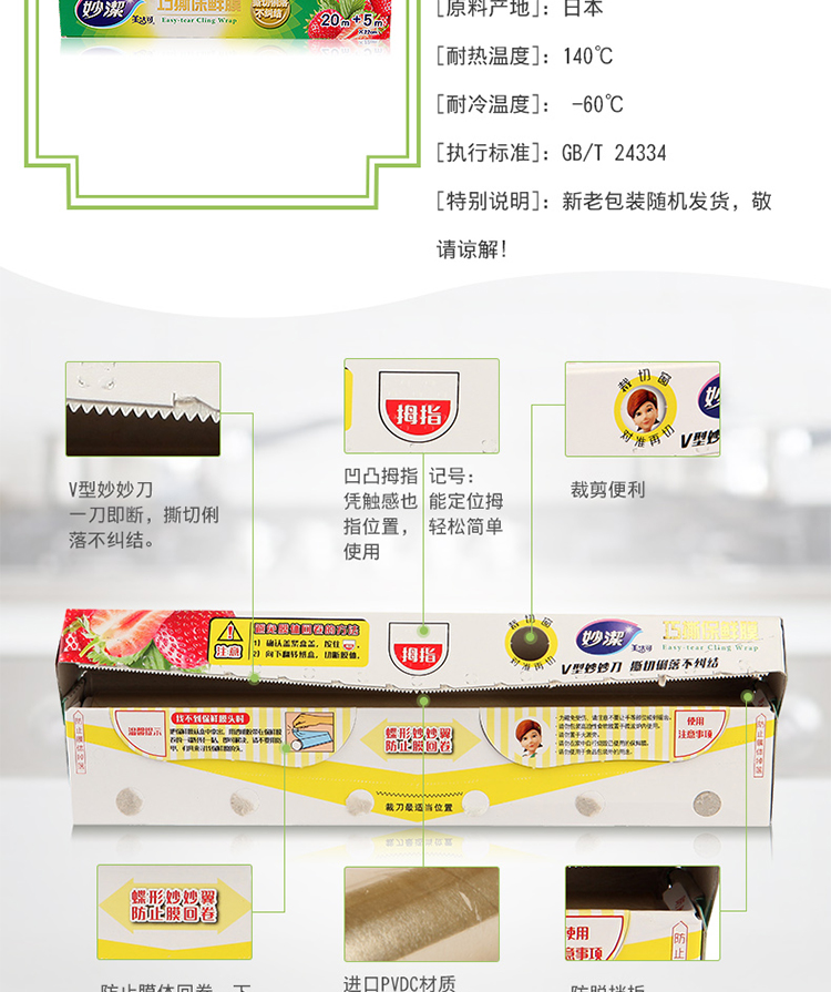 商品名称:妙潔巧撕保鲜膜20米+5M小碗盒装 MPVDC50+5M