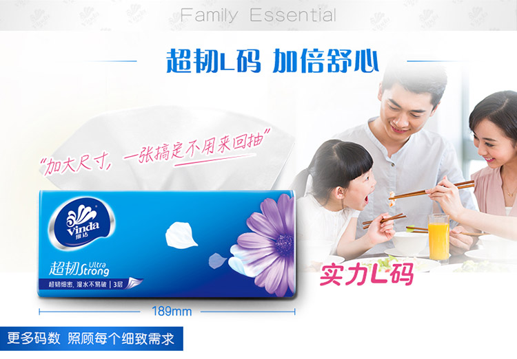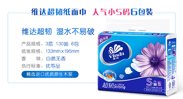 商品名称:维达V2239-B 超韧3层130抽软抽*6包(小规格) 24包/箱