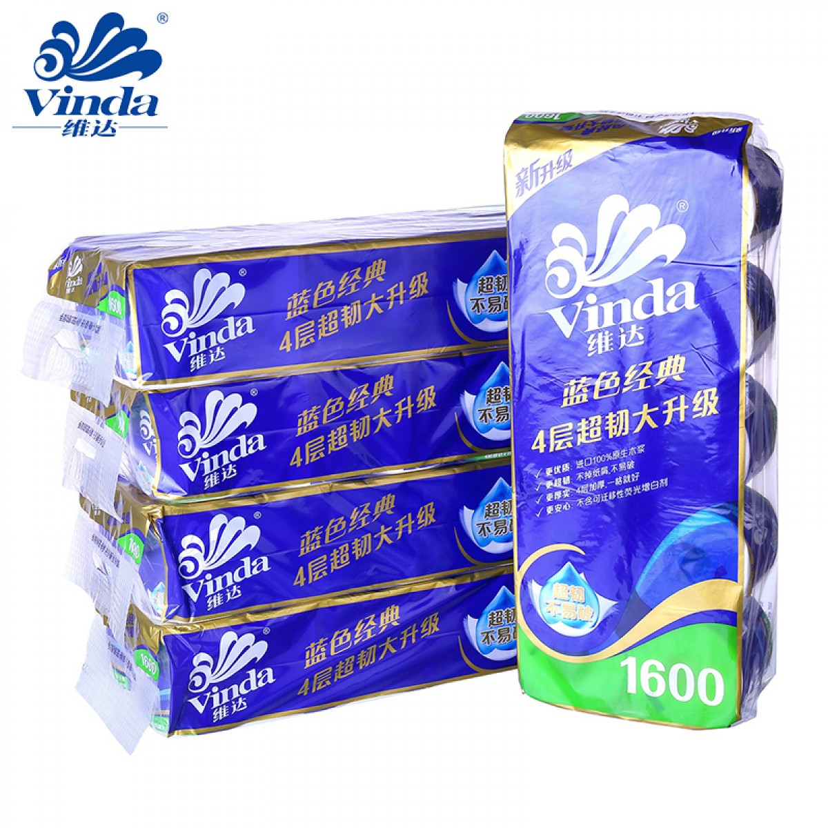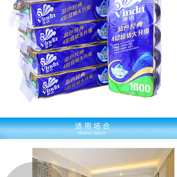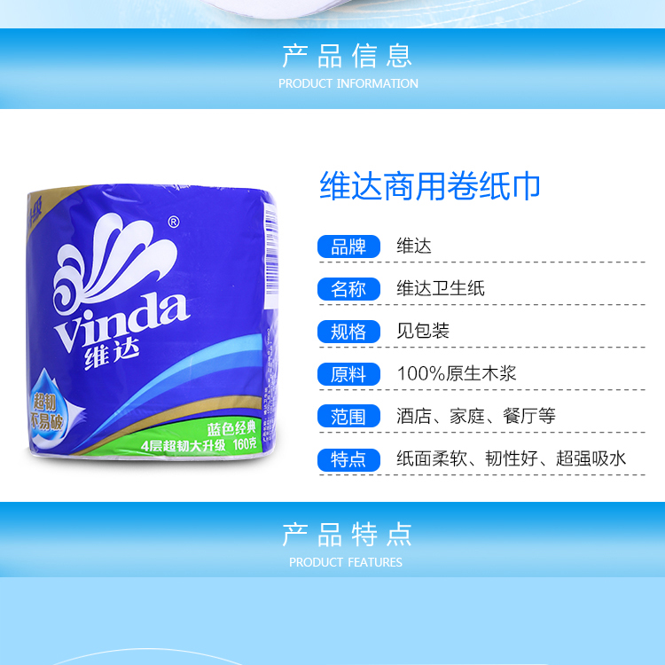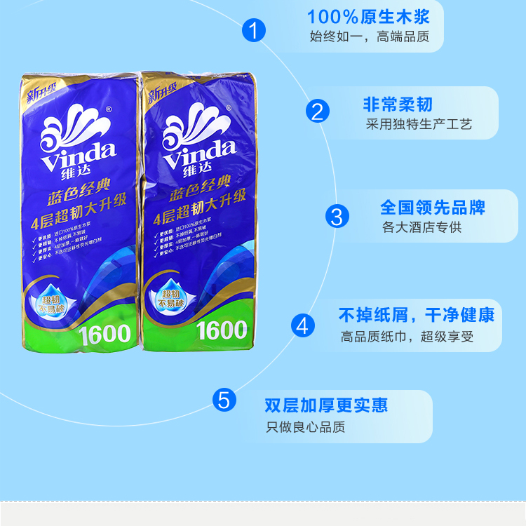 维达V4080 160g4层蓝色经典卫卷 一袋6提 一提10卷