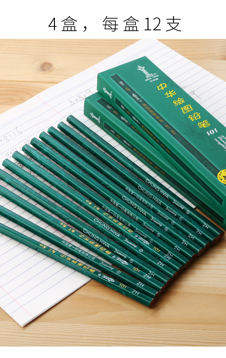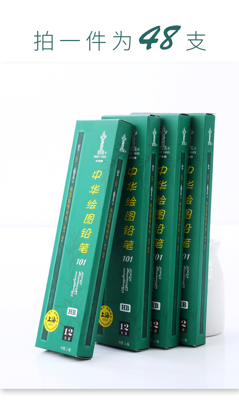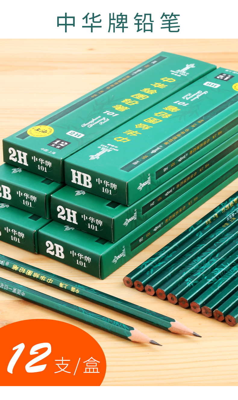 商品名称:中华 101-HB 绘图书写铅笔 12支/盒