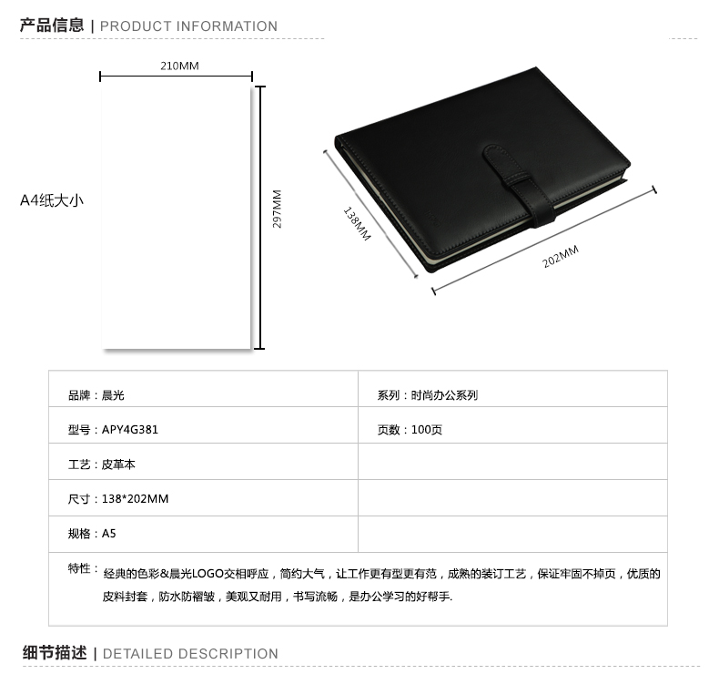商品名称:晨光(M&G) APY4G381日记本办公笔记本皮面A5皮革皮面记事本子100页