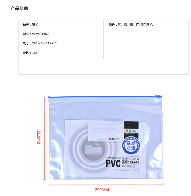商品名称:晨光文具PVC拉边袋拉链袋16K透明袋资料袋笔袋收纳袋 ADM94502