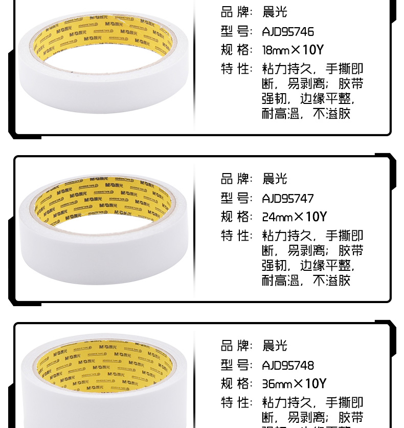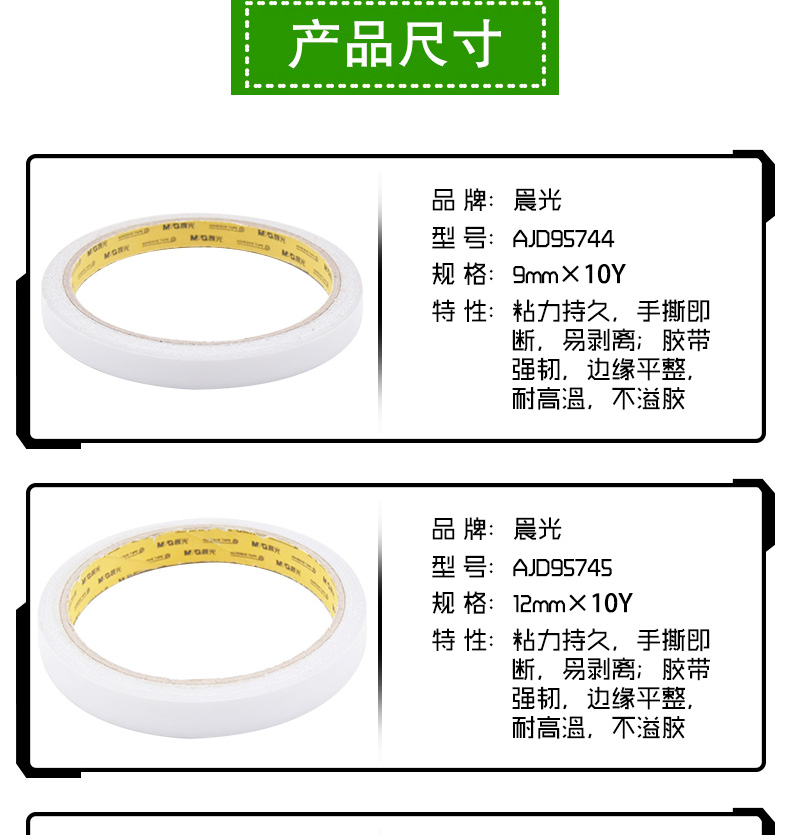 商品名称:晨光(M&G) 棉纸双面胶带可撕/办公高粘强力固定胶 32卷/筒 9mm*9.1米 AJD95744