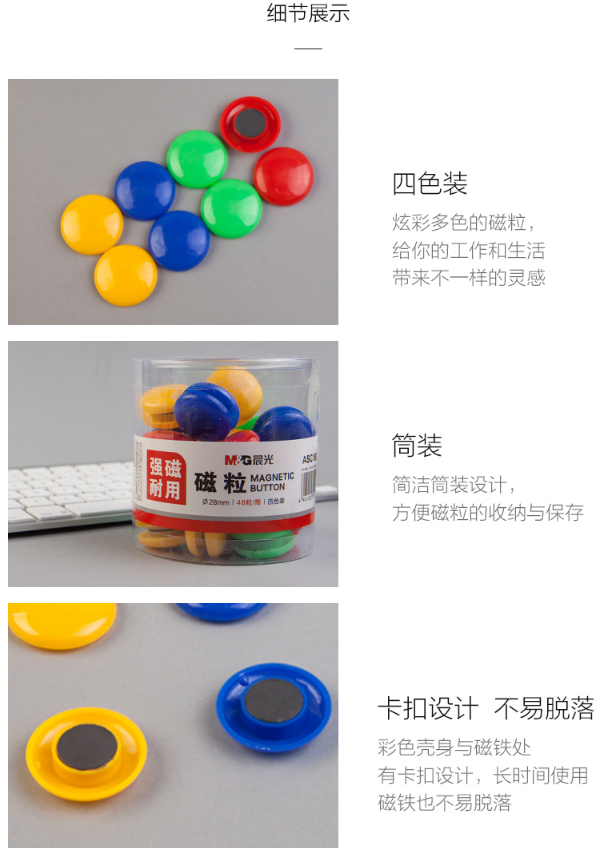 商品名称:晨光48粒装Φ28mm强磁粒白板专用磁扣磁钉磁贴吸铁石ASC99398
