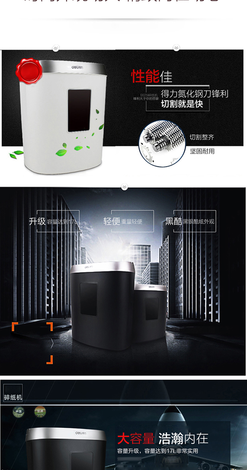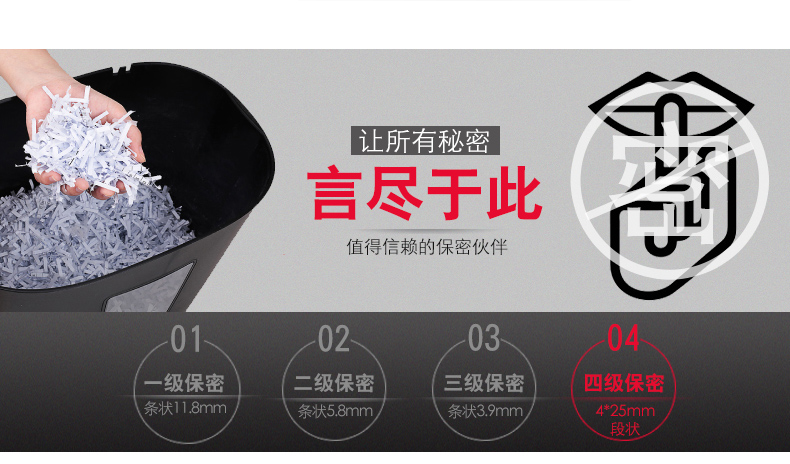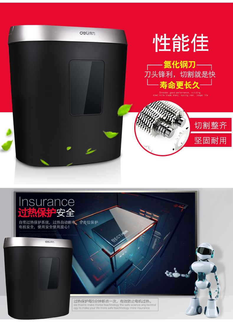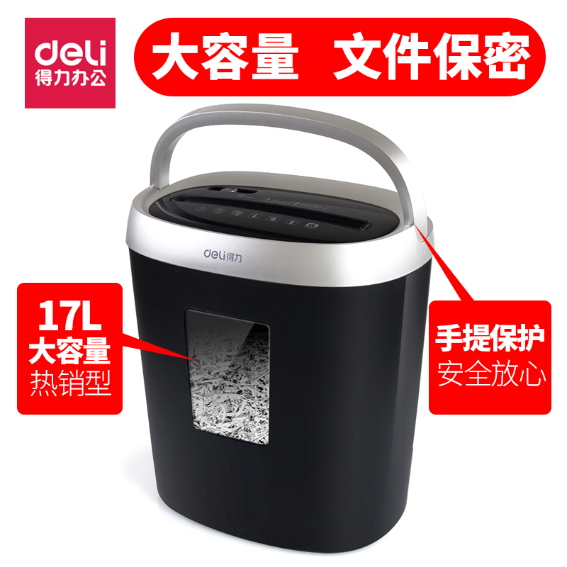 商品名称:得力9929碎纸机 4级保密 单次可碎5张 连续碎纸5分钟 最大碎纸幅面A4 容量17L 白色 单位:台