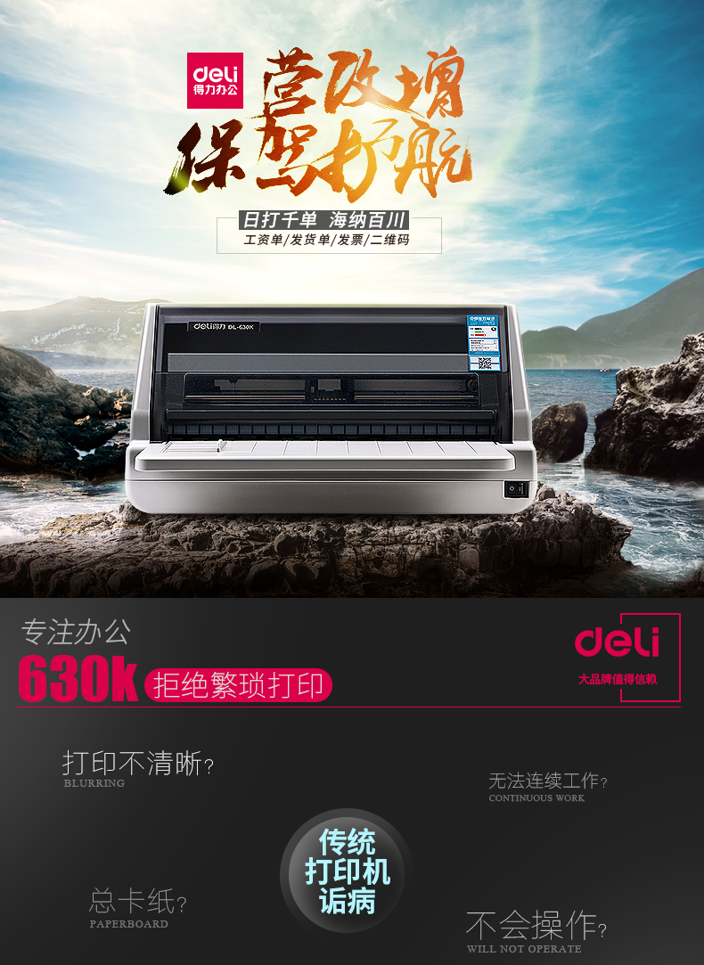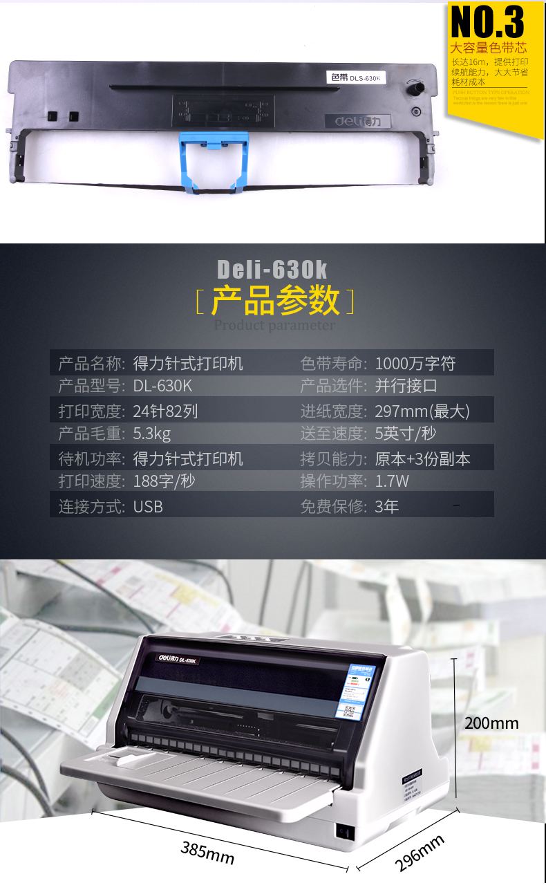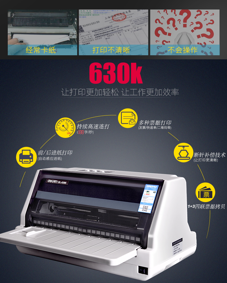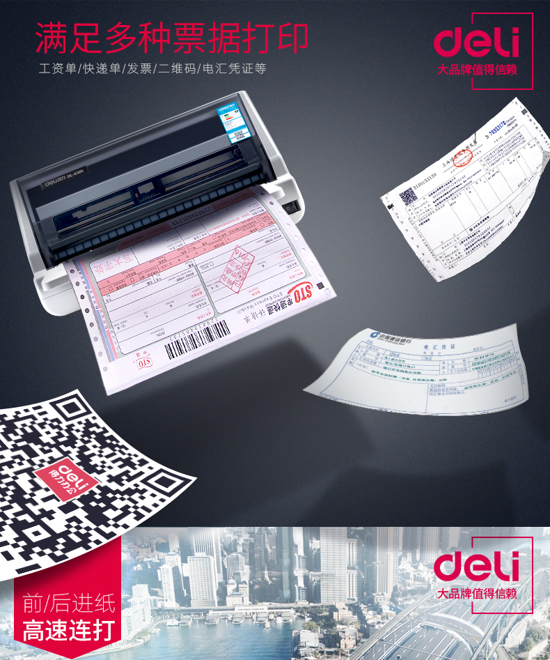 商品名称:得力DL-630K针式打印机 平推式 24针82列 单位:台