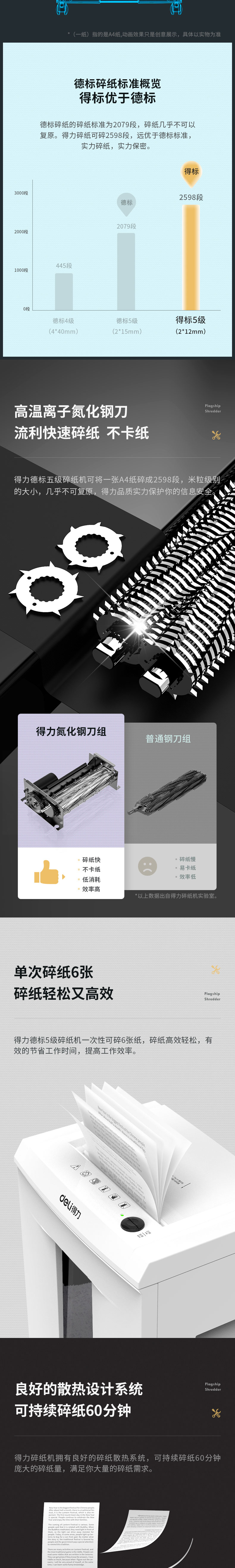 得力T600碎纸机 5级保密 单次可碎6张 连续碎纸10分钟 最大碎纸幅面A4 容量16L 单位:台