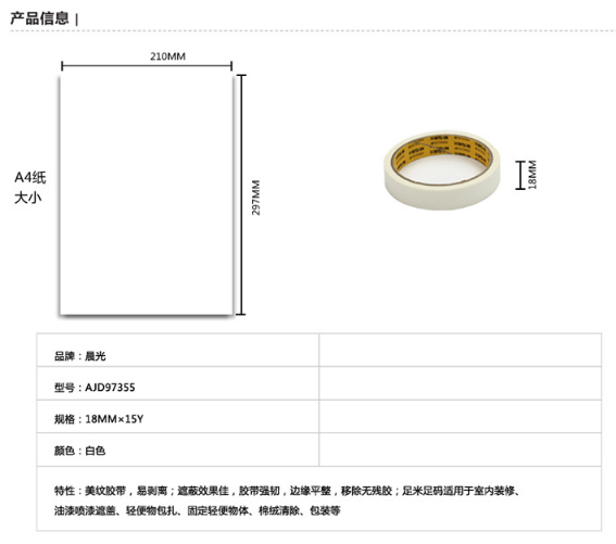 商品名称:晨光(M&G)AJD97355 美纹胶带18mm*15y单卷装