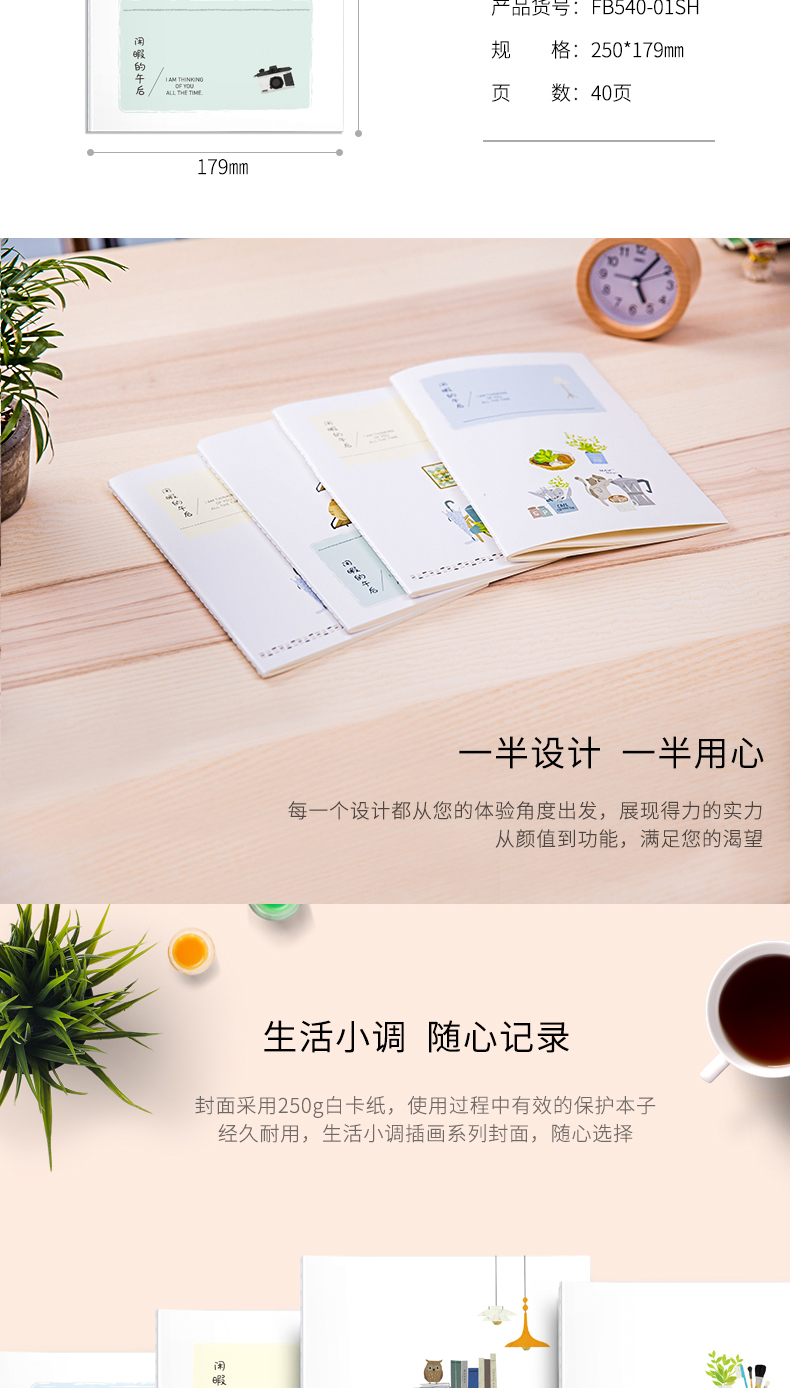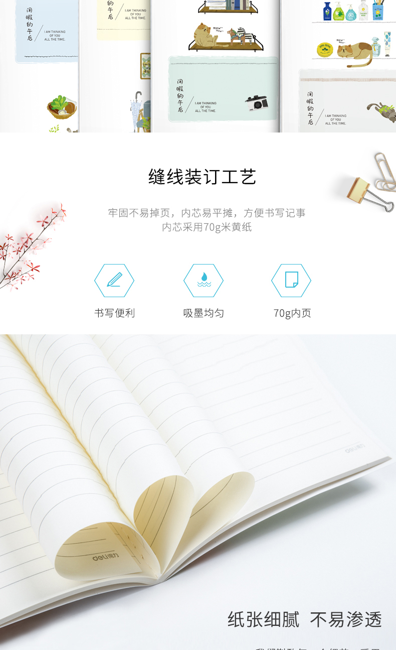 得力(deli) FB540-01SH 得力笔记本B5印花线装记事本40页软面抄 缝线本学生记事本