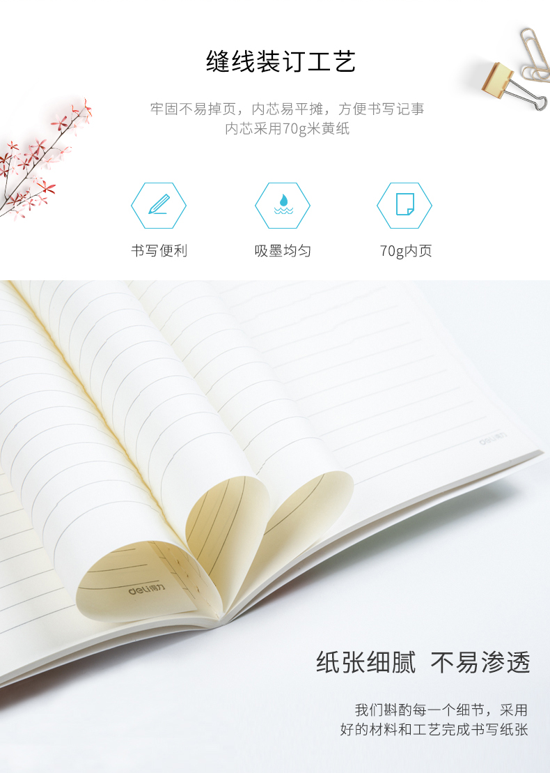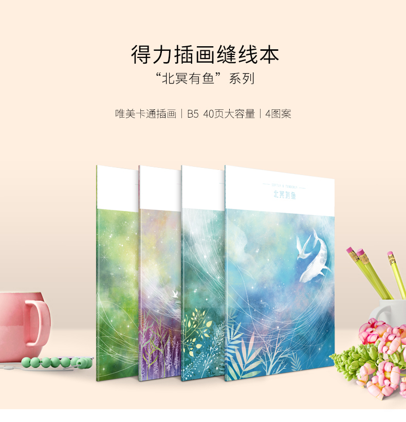 得力(deli)FB540-01ZR 得力笔记本B5印花线装记事本40页软面抄 缝线本学生记事本 FB540-01ZR