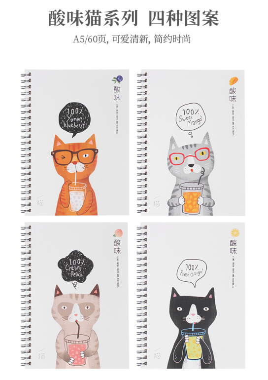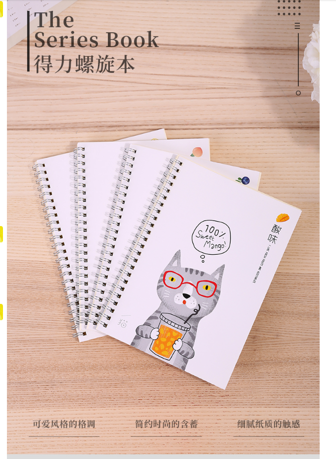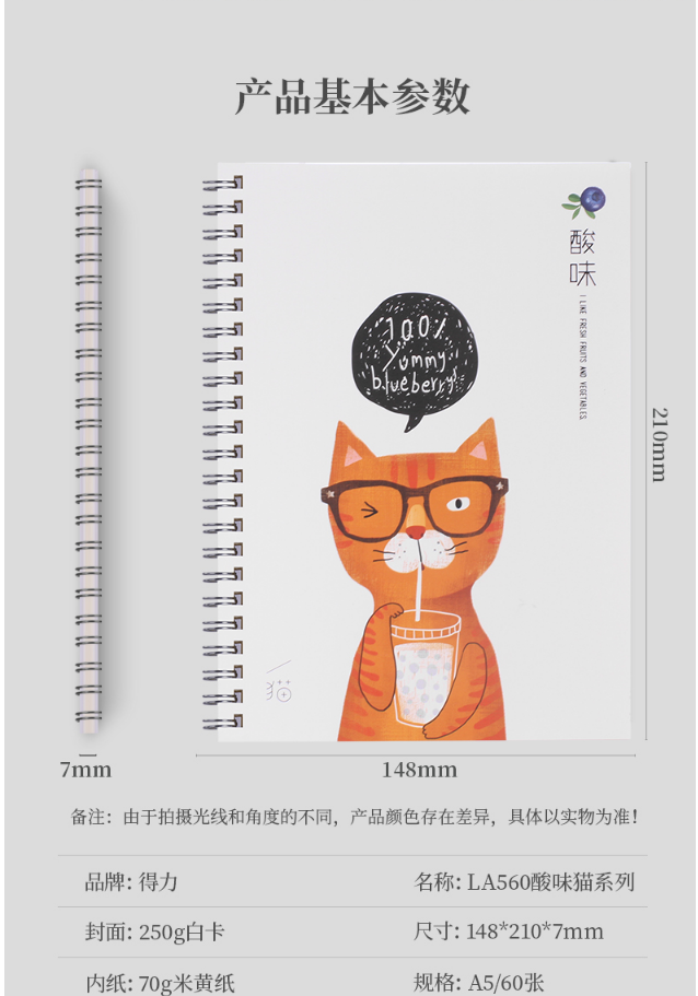 商品名称:得力LA560酸味猫系列笔记本 中小学生课堂笔记软面抄 大学生用课堂记事软面螺旋手抄本 商务会议记事本便携