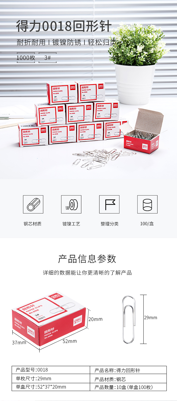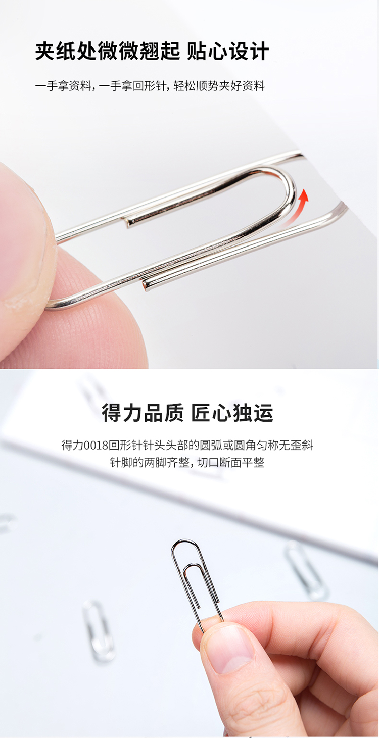商品名称:得力0018 回形针100枚/盒