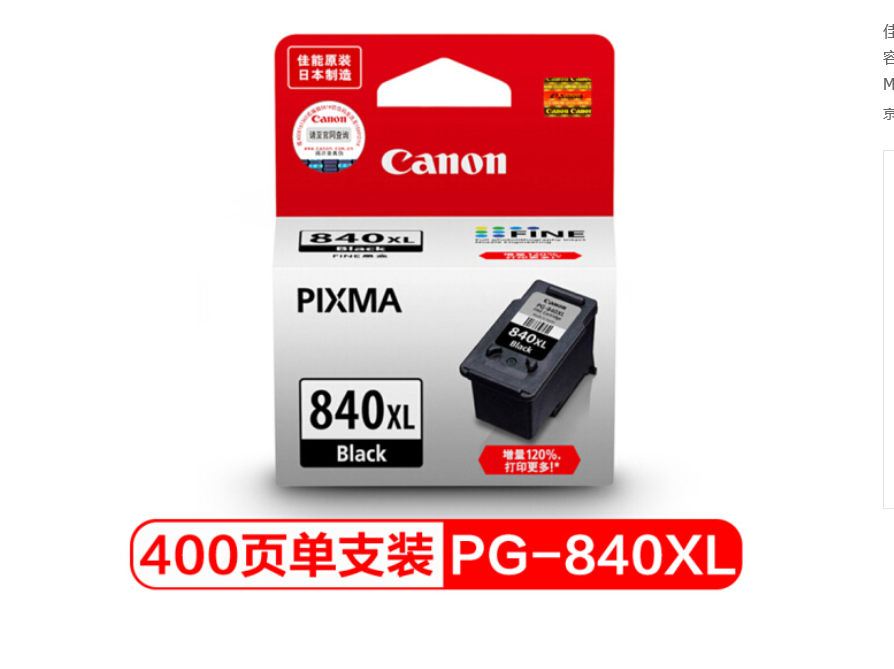 佳能(Canon)PG-840XL 高容黑色墨盒(适用MX538、MX458、MX478、MG3680)
