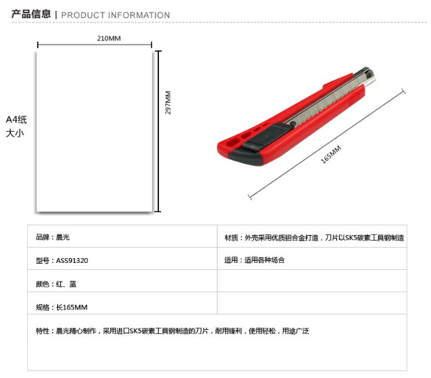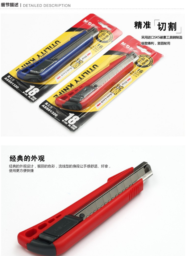 商品名称:晨光文具ASS91320 自动锁大号美工刀18mm 裁纸刀 壁纸刀