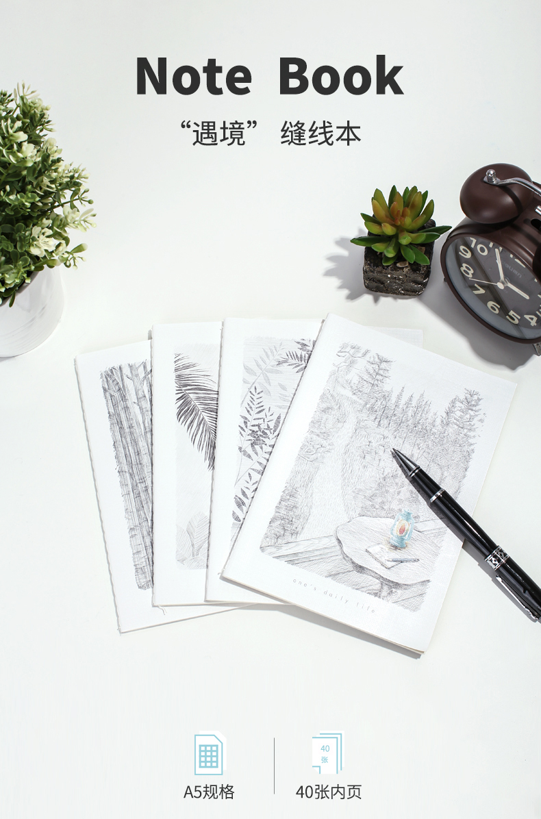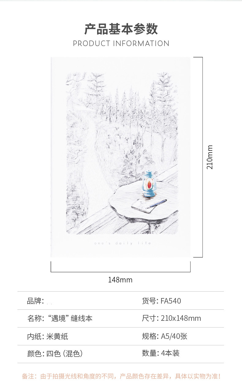 商品名称:得力FA540缝线本 (遇境)210mm*148